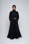 Inaya est un kimono abaya à la coupe volante, conçu pour allier légèreté et raffinement. Confectionné dans un tissu fluide noir, il offre un tombé élégant et une silhouette aérienne. Les manches évasées apportent du mouvement et une touche sophistiquée à l’ensemble.