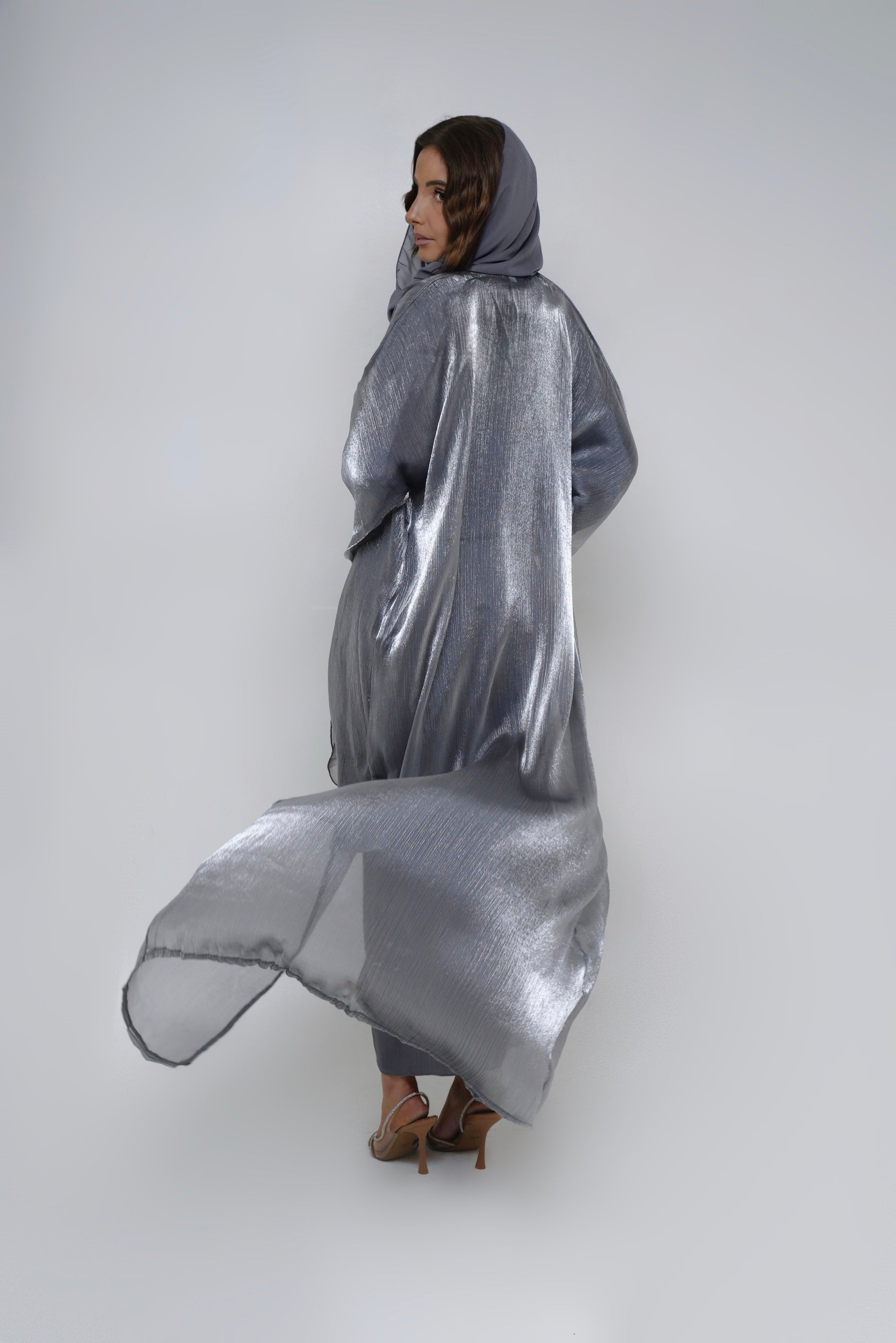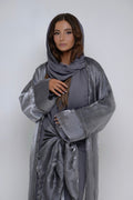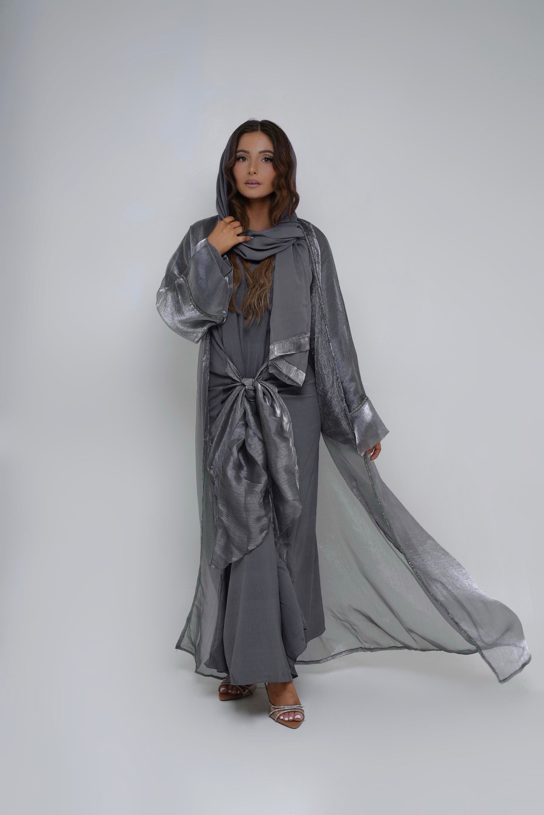L’ensemble Jihane comprend un kimono à la coupe droite et une sous-abaya, conçu pour offrir confort et sophistication. Le kimono, réalisé dans un tissu fluide et léger, se pose élégamment sur la sous-abaya en organza argenté, apportant volume et mouvement. Des détails subtils à l’avant soulignent la finesse de l’ensemble. L’ensemble est complété par un hijab assorti et une ceinture cousue à la sous-abaya pour ajuster la taille selon l’effet souhaité.