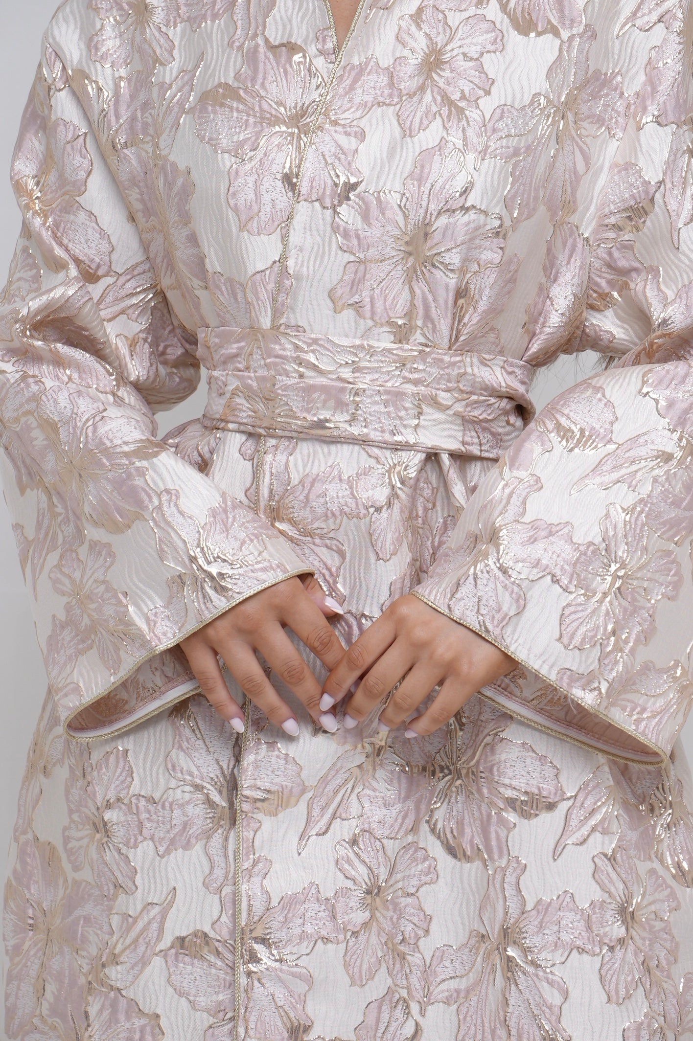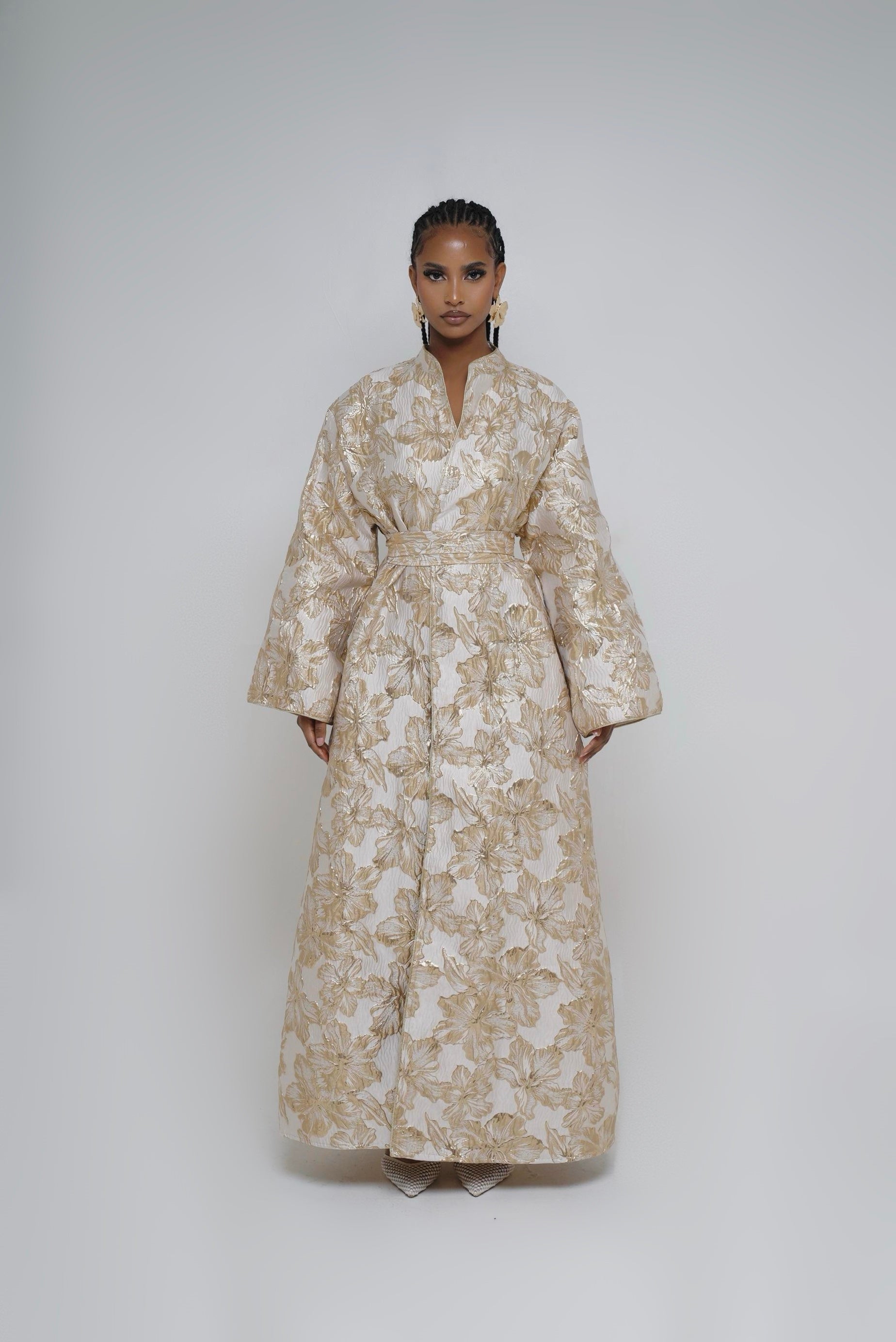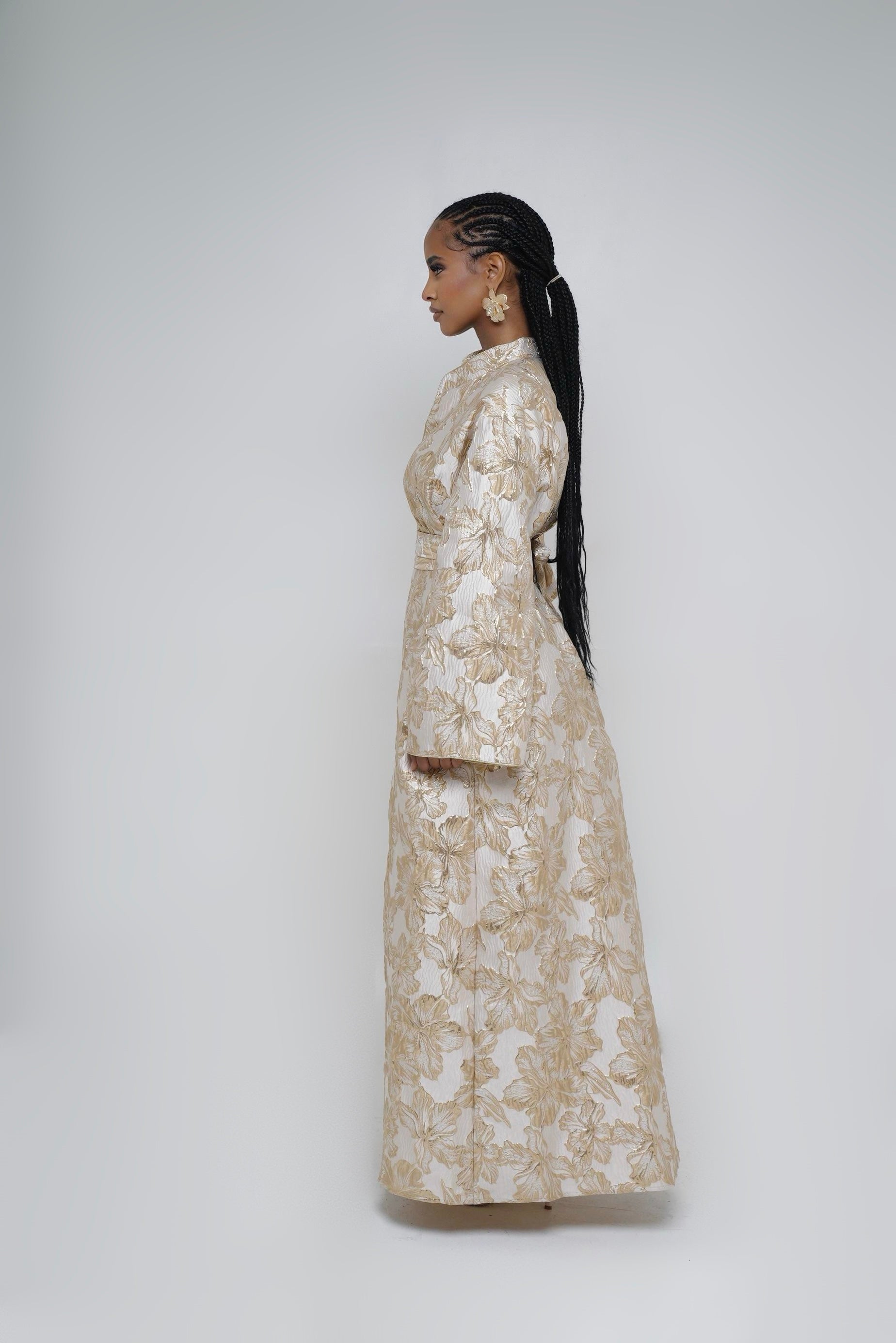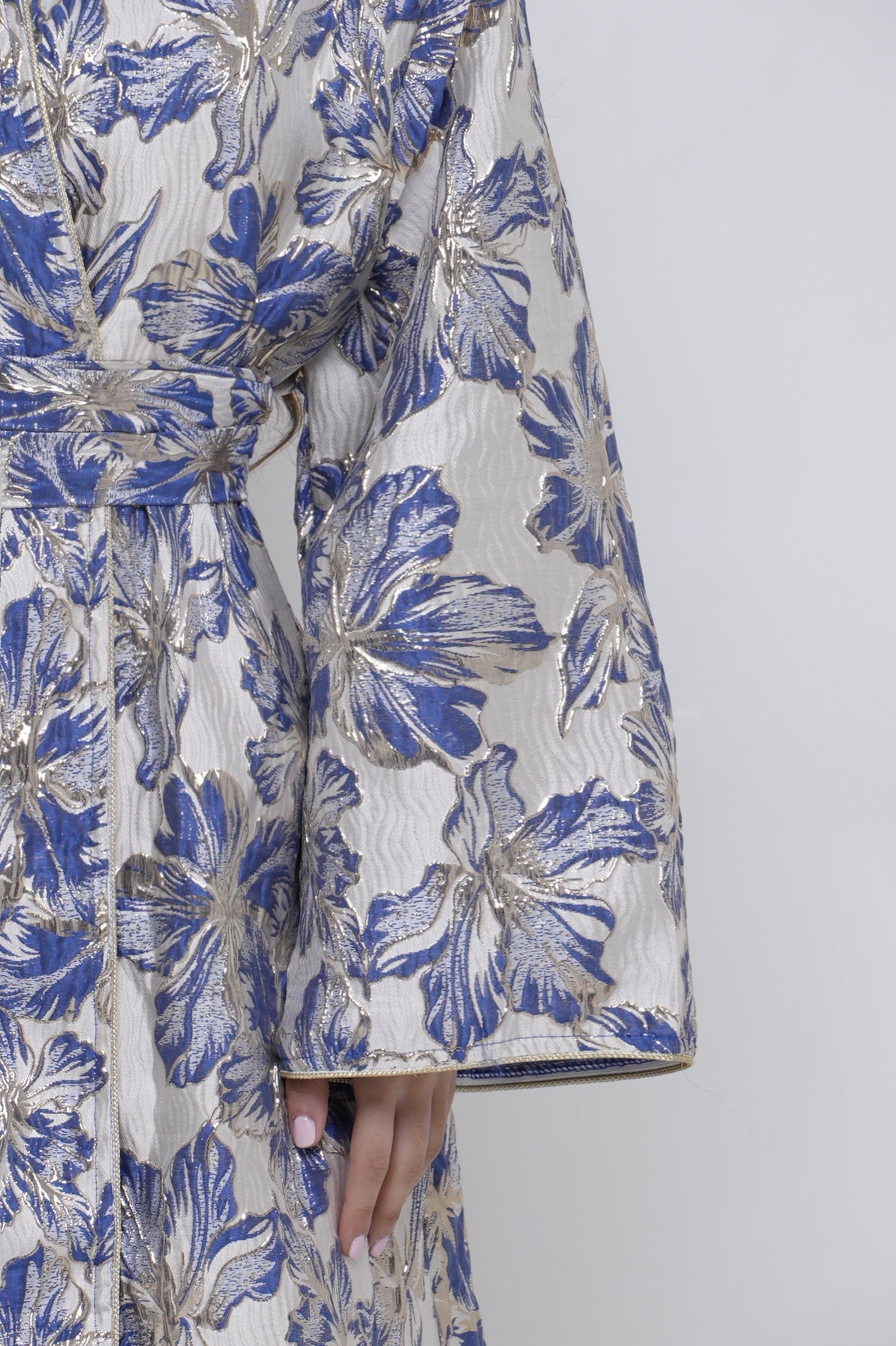 Le kimono Esmeralda présente une coupe droite et ample, conçu pour un porté confortable et élégant. Les manches pagode apportent du volume et du mouvement, tandis que la ceinture comprise permet d’ajuster la taille et de structurer la silhouette selon l’effet souhaité.